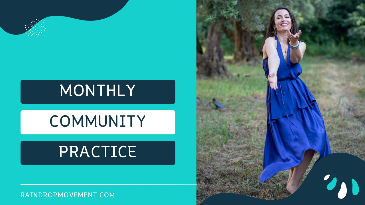 My hope is that everyone who joins these monthly sessions feels the healing power of the Raindrop Movement ™ arc. Allow yourself to be touched by the beauty of your Sacred, Feminine self.